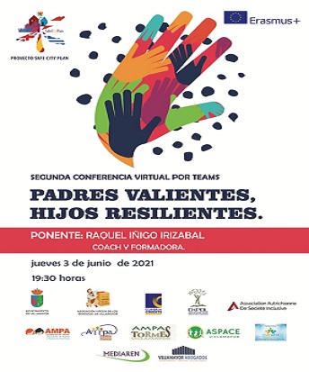 Videoconferencia «PADRES VALIENTES, HIJOS RESILIENTES», impartida por Raquel Iñigo Irizabal, coach y formadora, el día 3 de junio de 2021 a las 19:30 horas por TEAMS, enmarcada en el proyecto europeo SAFECITYPLAN coordinado por el Ayuntamiento de Villamayor y la Asociación Virgen de los Remedios, con la colaboración de las Asociaciones de Padres y Madres de los Centros Educativos de la localidad. Puedes acceder a la videoconferencia pinchando a través de tu ordenador, tableta o móvil en el siguiente enlace: Videoconferencia «PADRES VALIENTES, HIJOS RESILIENTES»