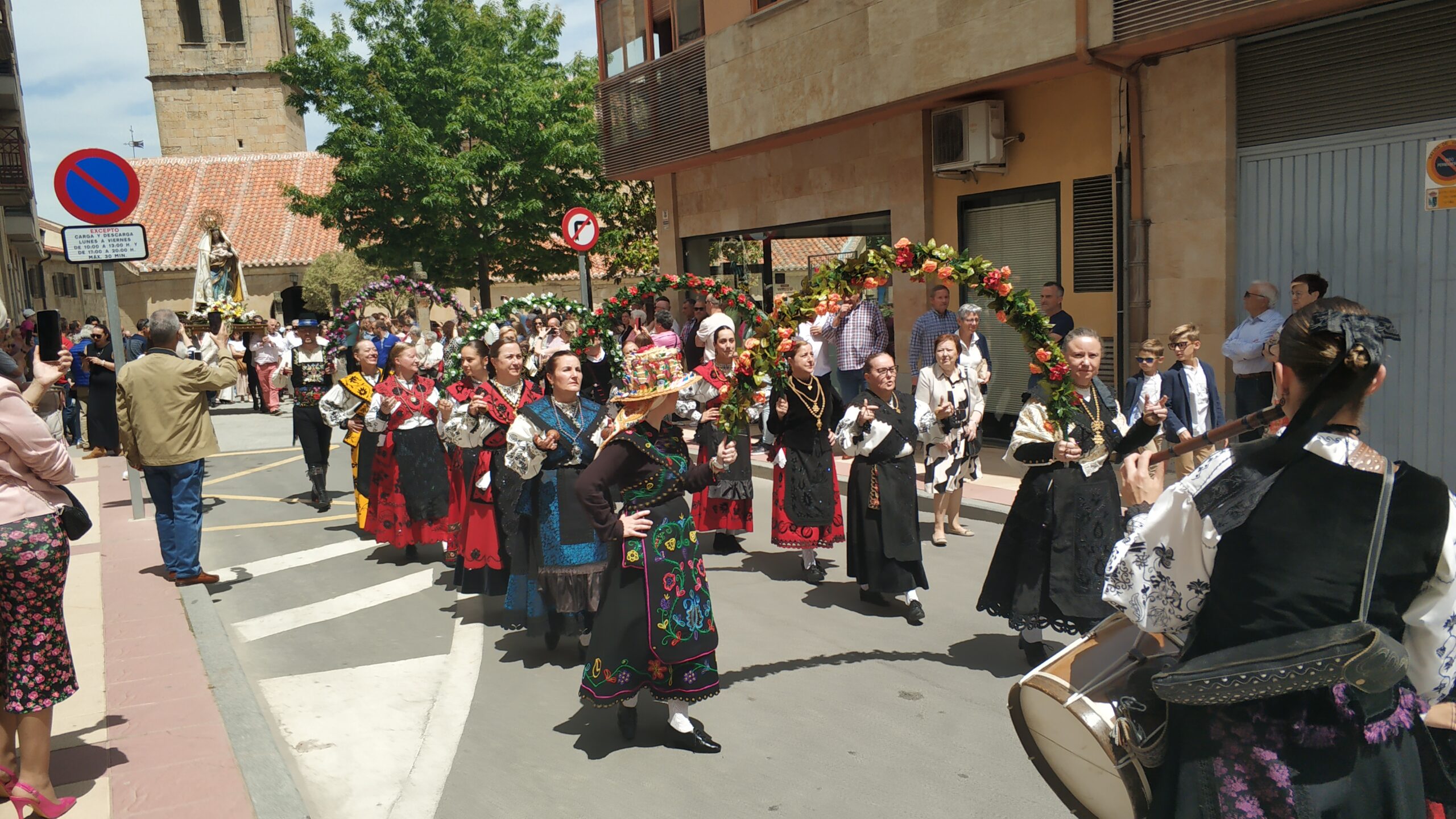 Un año más, el domingo 1 de junio después de misa, pudimos disfrutar de la procesión en honor a Nuestra Señora la Virgen de los Remedios, patrona de Villamayor. Personas muy variopintas acompañando a la virgen a la altura de Piedra Dorada y Plaza del Alguacil. Los bailes regionales, como siempre, a cargo del grupo Tresbolillos. Vecinos, alcalde y concejales del Ayuntamiento cruzando la calle San Miguel Bailes en honor de nuestra patrona en el atrio de la iglesia Joven componente del grupo folclórico Un día de fiesta para recordar. ¡Viva VILLAMAYOR! y ¡Viva la Virgen de Los Remedios!