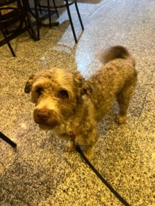 Por las mañanas, lo saco un poco a que haga sus necesidades. Después hago las tareas de casa y, a mediodía, lo llevo conmigo a por el pan y a hacer las compras diarias, siempre y cuando pueda meter el perro en el establecimiento. Luego lo llevo conmigo a tomar algo y después volvemos a casa a comer. Por las tardes lo saco a última hora para que se desahogue y corra un poco. Por la noche duerme conmigo.